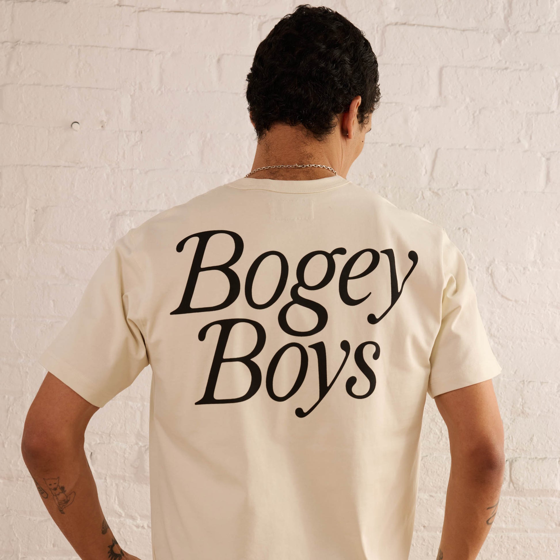 Our bespoke heavyweight cotton tee, built for comfort and structure. Features a screen-printed Bogey Boys logo graphic on the front chest and back.